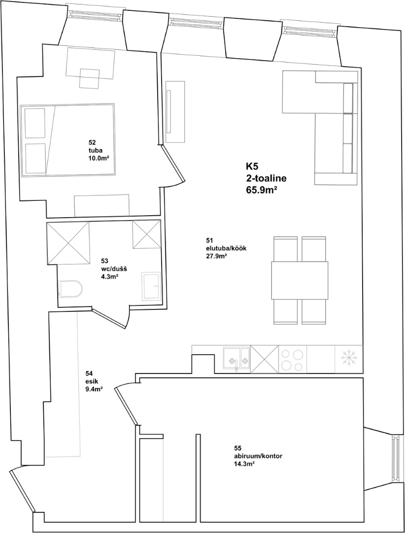 Korteri aknad on lõuna ja lääne suunas. Korteris on oma ventilatsiooni agrekaat.