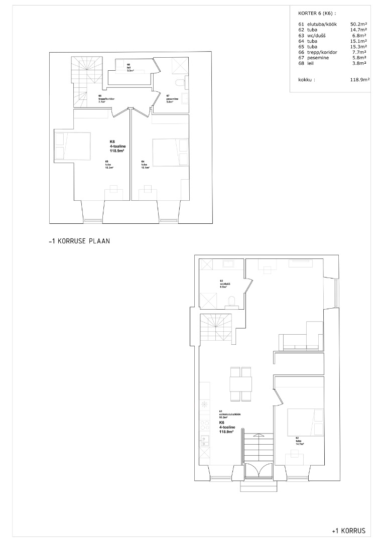 • korter läbi kahe korruse