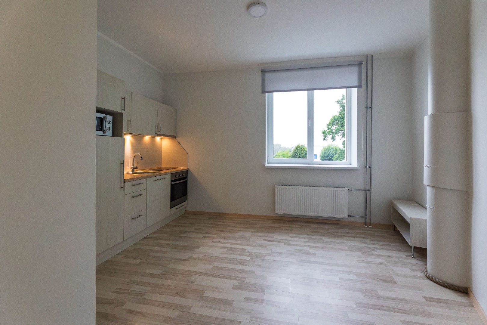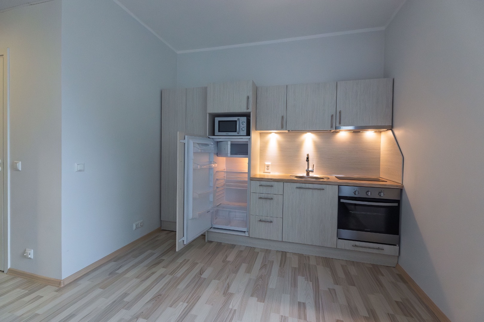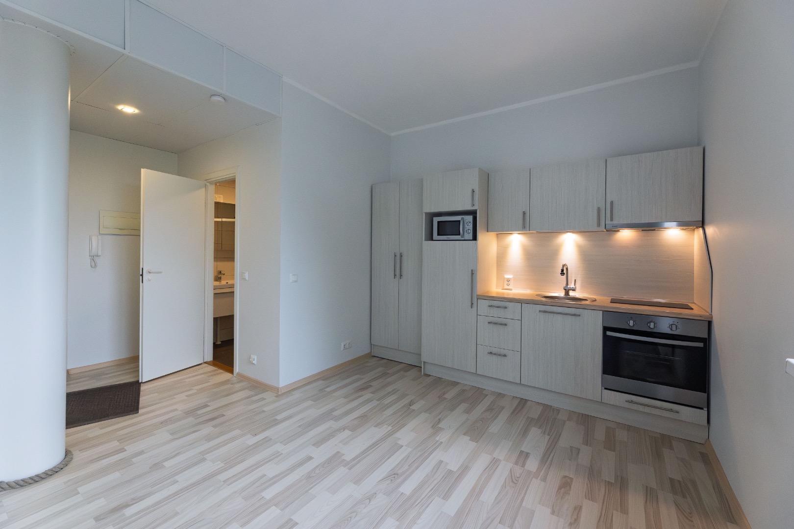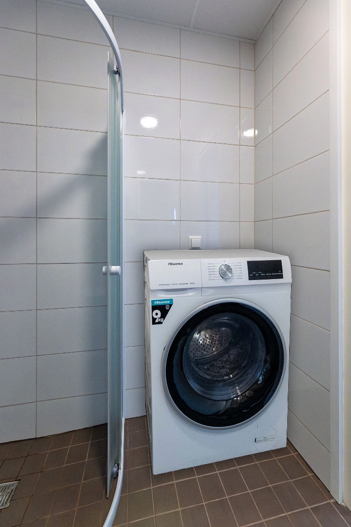 • Paigaldatud on köögimööbel koos tehnikaga; integreeritud külmkapp, 2-kohaga keraamiline pliit, õhupuhasti, praeaahi ja mikrolaineahi, pesumasin.