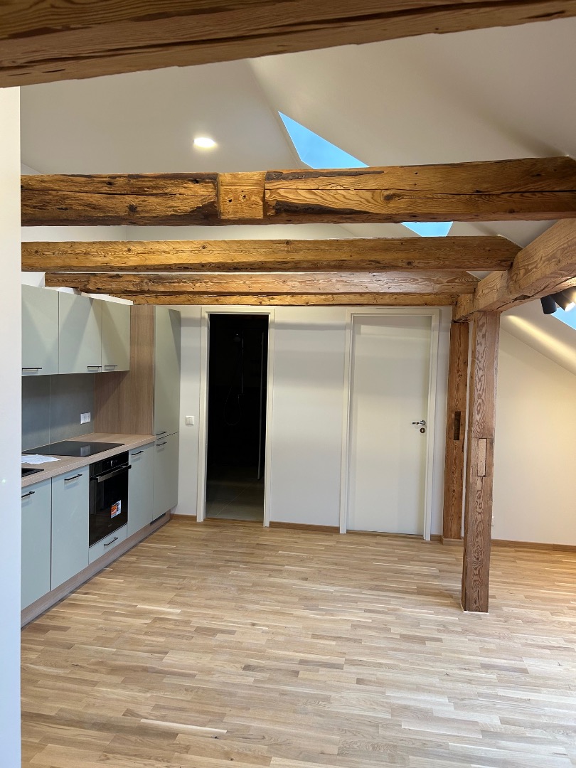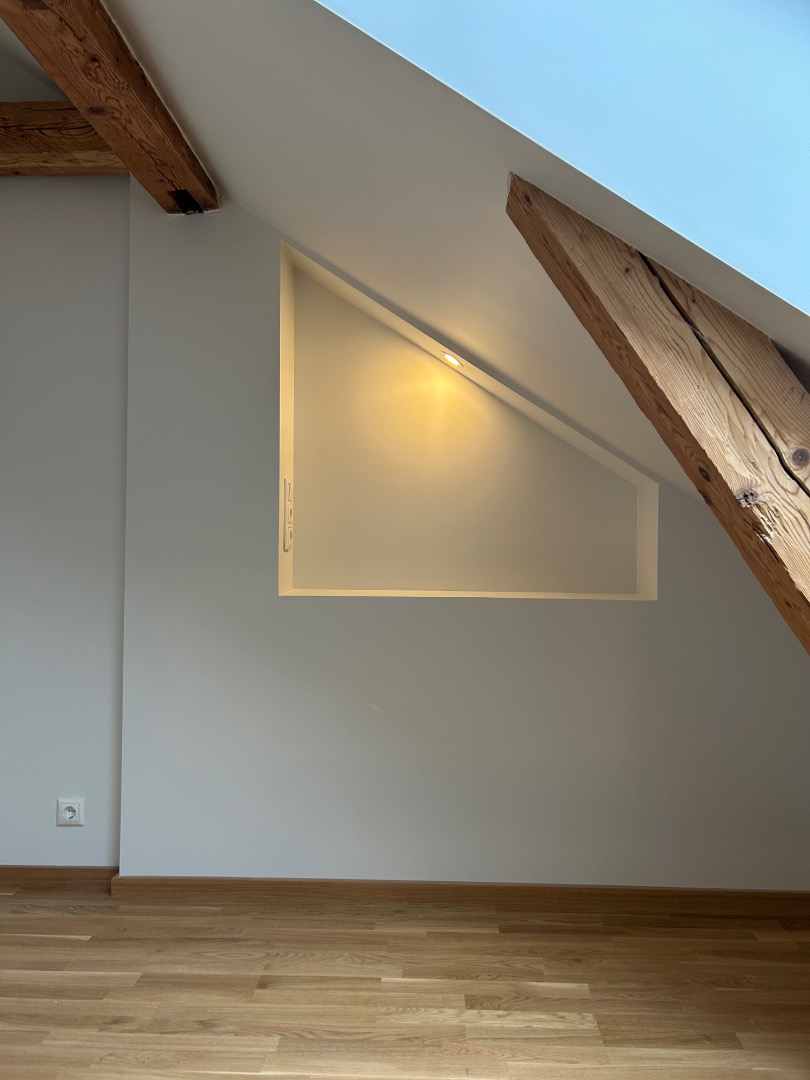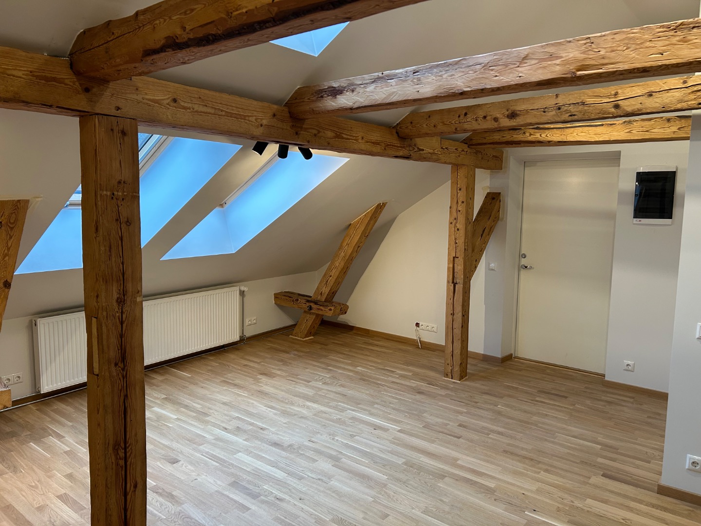 Korteris on neli katuseakent. Üks magamistoas ja kolm elutuba/köögis. Korteris on köök, külmkapi, praeahju ja nõudepesu masinaga. Korteris on pesamasin-kuivati.